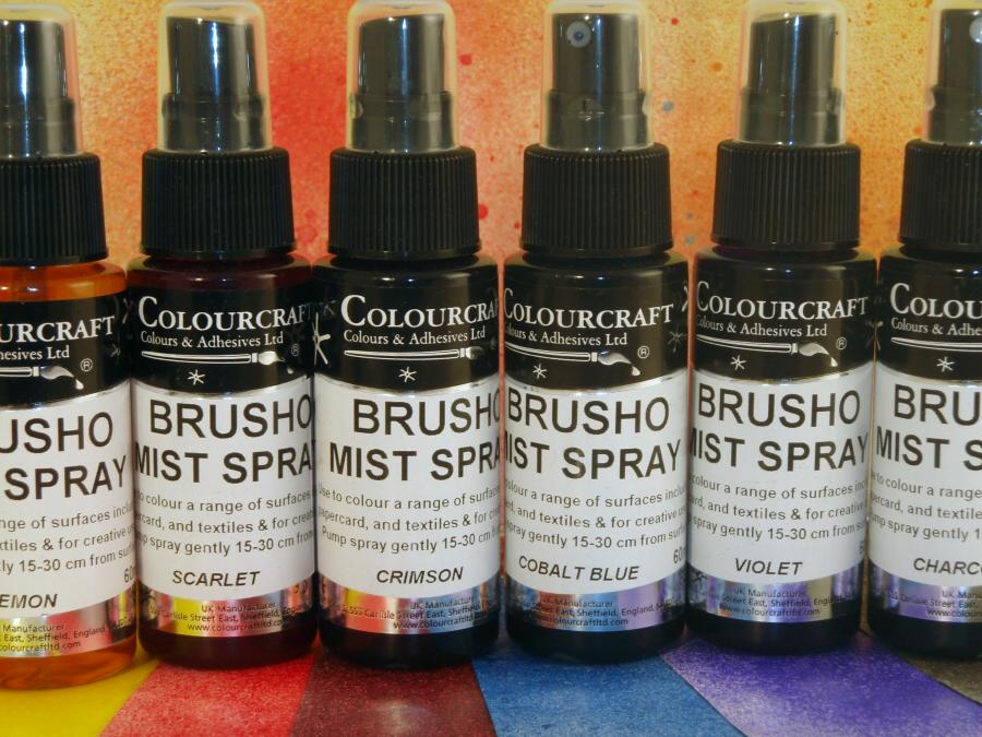 Brusho Acrylic Mist Sprays produce vibrant colours ideal for creative projects on paper, card, board and fabric such as silk.