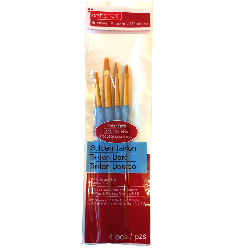 Great value set of 4 Gold Taklon Brushes will make the perfect addition to your art collection. The brushes are made out of synthetic fibres which will keep the bristles sleek and durable, ensuring lasting firmness for use with a range of paints.