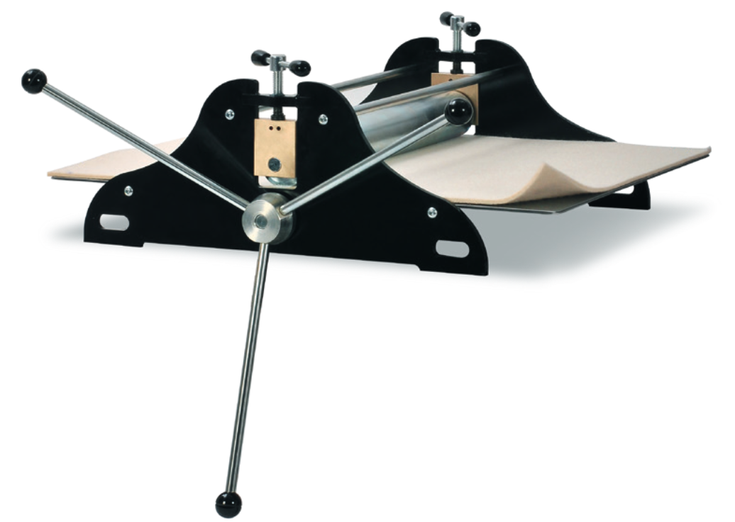 A large professional etching press, with a solid steel structure and a 50mm diameter top roller.