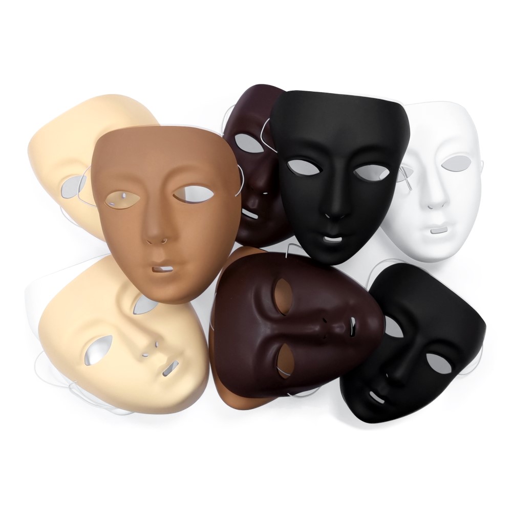 - Set of 10 Plastic Multicultural Face Masks with smooth finish.