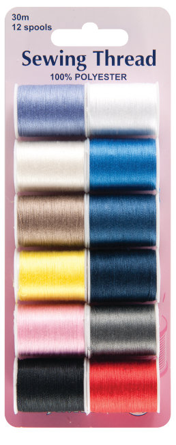 Hemline sewing thread pack of 12 x 30m assorted spools.