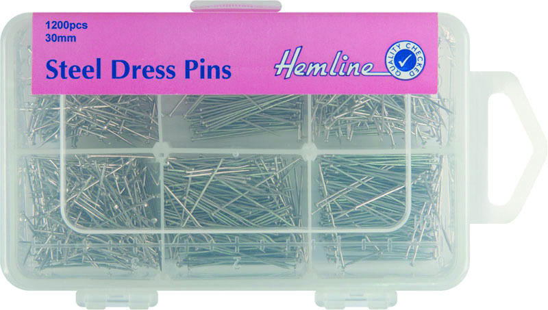 Standard size steel dressmaking pins, suitable for general use. Supplied in plastic craft storage organiser. 30mm, 1200 pieces.